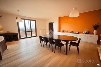 CERTOSA DI PAVIA: Inserito in una palazzina signorile servita da ascensore, con posizione privilegiata che garantisce una privacy totale e una splendida esposizione alla luce naturale. L'appartamento è posto all'ultimo piano. Entrando nell'abitazione si viene accolti da un salone rifinito in caldo parquet. Il soggiorno si affaccia direttamente su un grande terrazzo loggiato, un vero e proprio sfogo esterno coperto e profondo, ideale per godersi momenti di relax all'aria aperta in ogni stagione. La cucina è un ambiente separato e abitabile, spazioso e moderno, perfetto per chi cerca funzionalità senza rinunciare allo stile. Proseguendo verso la zona notte, gli ambienti sono ben distribuiti che includono un bagno padronale di notevoli dimensioni, impreziosito da un elegante doppio lavabo in marmo. La casa è pensata per la massima praticità quotidiana, come dimostrano il comodo ripostiglio interno già attrezzato e il funzionale angolo lavanderia separato. Le finiture interne, che spaziano dal parquet della zona giorno alle ceramiche moderne della zona notte, si sposano con dettagli tecnici di qualità come gli infissi in legno a doppio vetro e le zanzariere. A completare questa proposta davvero esclusiva troviamo un ampio box di generosa profondità, capace di ospitare comodamente un'auto e offrire spazio extra per scaffalature o moto, e una pratica cantina. Si tratta di una soluzione ideale per chi cerca l'esclusività dell'ultimo piano unita alla comodità di pertinenze, il tutto inserito in un contesto tranquillo e curato.