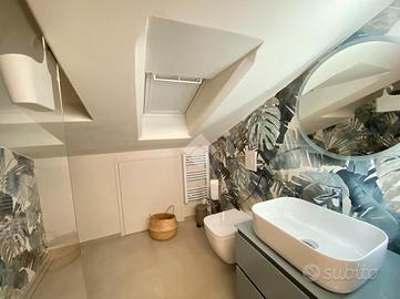 La zona notte presenta una camera da letto matrimoniale con ampio terrazzo abitabile ed un comodo bagno dotato di box doccia.