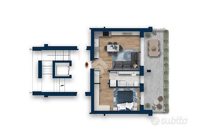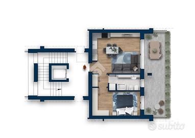 In via Brenta di prossima realizzazione proponiamo in palazzina di sei unità abitative, appartamenti di due e tre locali, al piano terra con giardino, al primo piano con terrazzi. Qui proposto il 2 locali al piano primo ed ultimo composto da soggiorno con angolo cottura, disimpegno, camera da letto, bagno e terrazzino. La nuova realizzazione rientra nella categoria 'Classe Energetica A' avendo un fabbisogno inferiore a 30KWh per anno a metro quadro. È evidente come il raggiungimento della Classe A per gli edifici sia condizionato dall'impiego di impianti più efficienti, dall'uso di materiali di ultima generazione, dalla scelta della tipologia costruttiva fino ai serramenti, mettendo in campo tecnologie che sfruttano fonti energetiche rinnovabili, pompe di calore e fotovoltaico, il tutto con una logica di costi-benefici. Il progetto ha voluto puntare fortemente su questi aspetti attraverso l'ottimizzazione impiantistica e costruttiva degli edifici, mirando al risparmio dei consumi energetici che si traducono per il proprietario in un sostanziale risparmio nella bolletta energetica. I sistemi costruttivi adottati, l'uso di materiali di ultima generazione ed il controllo garantiscono il raggiungimento di un comfort acustico ottimale. Le soluzioni abitative saranno dotate di un impianto di riscaldamento autonomo è del tipo ibrido a funzionamento misto. Queste fonti di energia saranno una caldaia a condensazione per la produzione di acqua calda di riscaldamento ed integrazione del bollitore per la produzione di acqua calda ad uso sanitario, una pompa di calore ad alta efficienza che alimenterà il circuito di raffrescamento. Inoltre saranno installati pannelli fotovoltaici per l'alimentazione delle utenze elettriche comuni, come per esempio la pompa di calore. Nella fase invernale le fonti di energia provvederanno a riscaldare l'edificio attraverso un circuito ad acqua a pannelli radianti a pavimento. Nella stagione estiva la pompa di calore, attraverso lo stess