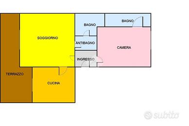 L'appartamento è composto dal soggiorno e cucina separati, molto luminosi grazie alle porte finestre che affacciano sul balcone.