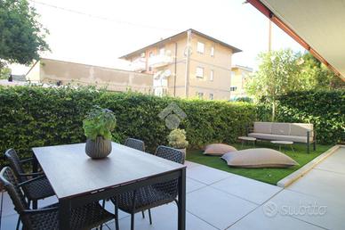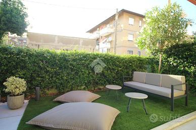 L'appartamento offre i comfort moderni: oltre al pratico giardino troviamo riscaldamento a pavimento, condizionatori e ascensore per andare al piano dei garage.