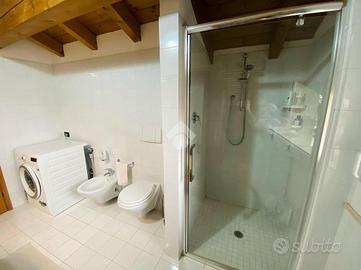 Il bagno finestrato, moderno e curato, è dotato di doccia.