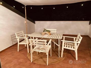 L'ingresso conduce direttamente nel soggiorno, un ambiente arioso che si apre sul terrazzo, ideale per serate tranquille all'aperto.