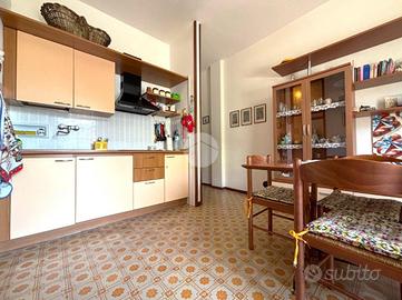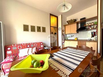 Entrando ci accoglie un piccolo ingresso che ci accompagna al soggiorno angolo cottura con affaccio sul balcone, comodo per poter mangiare fuori.