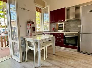 A 500 mt. dalla spiaggia, proponiamo in vendita un appartamento, parzialmente ristrutturato, sito al piano terra di una piccola palazzina.