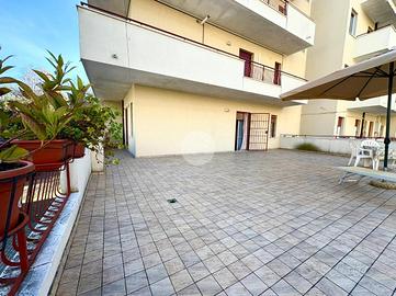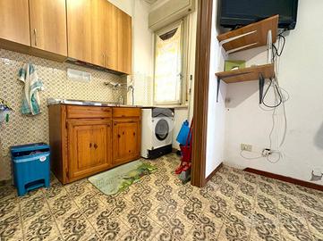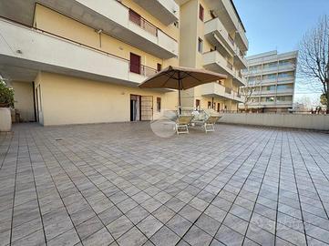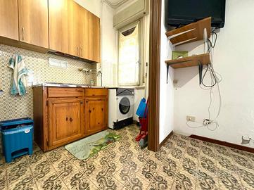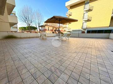 L'appartamento è composto da due locali, entrando ci accoglie un ingresso, proseguiamo poi verso la zona giorno composta dal soggiorno con cucinotto e da una porta finestra accediamo al terrazzo di circa 100 mq, uno dei punti di forza di questa soluzione abitativa.