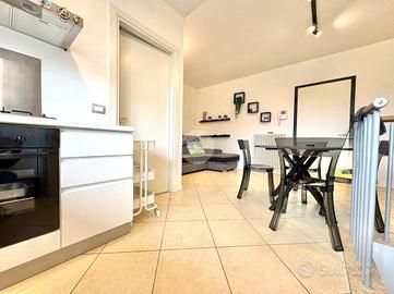 Entrando in casa, veniamo accolti dalla zona giorno, dove troviamo un comodo soggiorno angolo cottura e il bagno finestrato e dotato di box doccia. Da una scala a chiocciola, accediamo alla tavernetta dov'è presente la camera da letto. La soluzione è dotata di riscaldamento autonomo.