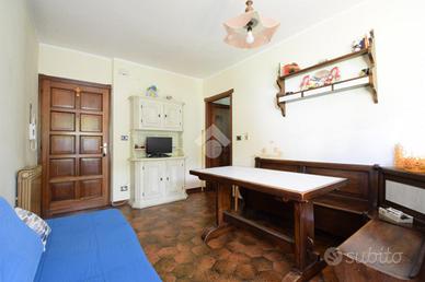 L'ingresso dell'alloggio apre direttamente sulla zona giorno con angolo cottura arredato con mobili in stile tipico montano. La zona giorno ha accesso sul piacevole terrazzino ove è possibile tenere un tavolino per una colazione od un pranzo all'aperto. Un disimpegno separa la zona giorno dalla zona notte.