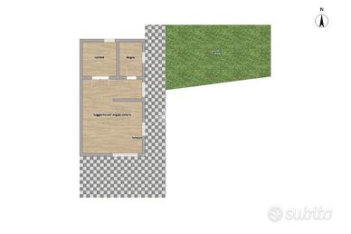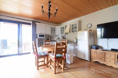 L'appartamento è sito sul lato Est del piano terreno della palazzina più orientale e dispone di un piacevole giardino privato oltre al grande terrazzo. L'ingresso avviene direttamente sull'ampia zona giorno con angolo cottura. Quest'ultima è resa luminosa dalla doppia esposizione, Est e Sud, e dispone dell'uscita diretta sulla porzione coperta del terrazzo che rappresenta uno spazio esterno vivibile tutto l'anno. Nel terrazzo è presente anche un lavabo con acqua potabile.