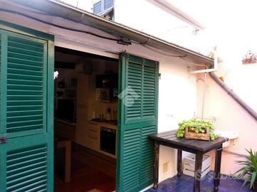 CHIAVARI, VIA RUPINARO: in palazzina d'epoca del centro storico, grazioso appartamento ristrutturato di recente, completamente arredato, su 2 livelli all'ultimo piano senza ascensore, composto da ingresso, soggiorno con cucina a vista, camera, bagno e terrazzo vivibile - Termoautonomo