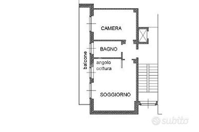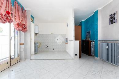 L'alloggio è sito al secondo piano di uno stabile dotato di ascensore. L'ingresso apre su un disimpegno che accompagna ai vari ambienti; la zona giorno, composta da soggiorno con angolo cottura, presenta l'uscita su un pratico balcone. La camera da letto, di comoda metratura, risulta particolarmente luminosa grazie alla presenza della porta finestra che conduce al balcone esterno. Il servizio, finestrato, è dotato di vasca e di tutti i sanitari. La pavimentazione, chiara, è omogenea in tutti gli ambienti. Il riscaldamento è centralizzato, con termo-valvole per contabilizzare i consumi. Completa la soluzione una cantina ed un box auto singolo acquistabile ad euro 15000. La posizione dell'alloggio risulta strategica per la vicinanza al centro, alla stazione, alla linea 30 per Torino ed a tutti i principali servizi.