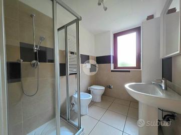 Il bagno finestrato è dotato di doccia e finiture moderne.