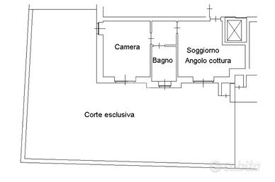 L'ingresso, protetto da portoncino blindato, conduce a un luminoso soggiorno con angolo cottura, dove ampie vetrate regalano luce naturale e permettono l'accesso diretto all'area esterna, ideale per rilassarsi o condividere momenti con amici e parenti.