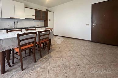 Chieve - In contesto di poche famiglie, proponiamo appartamento composto da soggiorno con angolo cottura ed accesso diretto al balcone con vista su giardino condominiale. Disimpegno, camera matrimoniale e bagno con vasca e attacchi per la lavatrice. Abitazione completa di zanzariere, possibilità di arredamento. Al piano interrato troviamo il box doppio di 25 mq e la cantina di 11 mq direttamente collegati al vano scale che porta all'appartamento. Libero subito