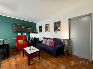 L'appartamento si apre su un piccolo ingresso che introduce alla luminosa zona giorno in open space, composta da soggiorno e cucina a vista. L'ampiezza dell'ambiente ha permesso la creazione di un comodo angolo studio, perfetto per lavorare da casa o dedicarsi ai propri hobby. Questo spazio living, curato e funzionale, rappresenta il cuore della casa.