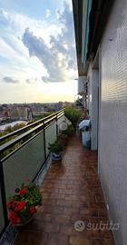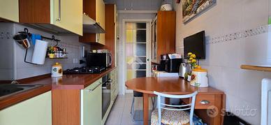 La posizione strategica dell'immobile offre un comodo accesso ai mezzi di trasporto pubblico, con fermate situate proprio sotto casa, rendendo agevoli gli spostamenti verso Milano e le aree circostanti. L'immobile offre un panorama mozzafiato su Milano, visibile dal lungo balcone che abbraccia l'appartamento e che regala viste diurne e notturne suggestive. La disposizione interna comprende un ingresso /corridoio che ospita due comodi armadi, una cucina abitabile che accede al balcone, un luminoso soggiorno che accede allo stesso balcone, una cmera e un bagno. Gli interni sono stati in parte ristrutturati, garantendo un ambiente accogliente e funzionale. La presenza dell'aria condizionata assicura comfort durante tutto l'anno.