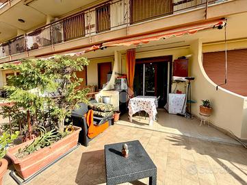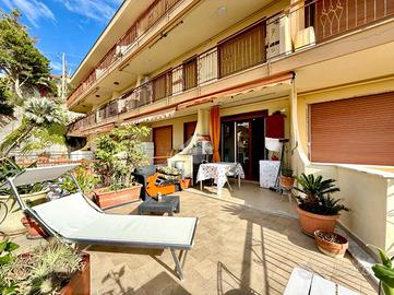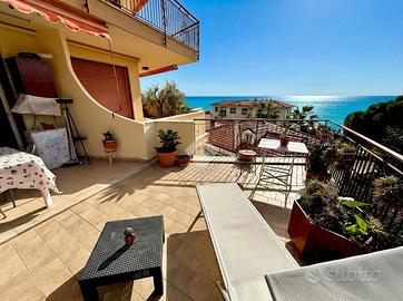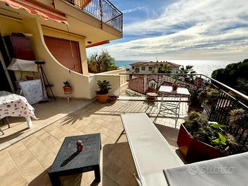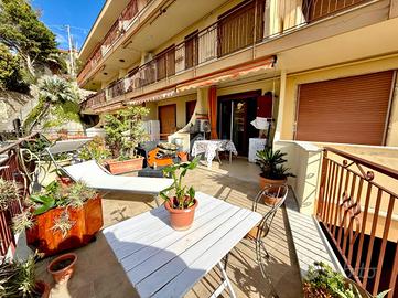 Elemento distintivo della proprietà è l'ampio terrazzo vivibile, che grazie alla sua esposizione favorevole rimane soleggiato fino al tramonto: un ambiente esterno che diventa la naturale estensione della casa, perfetto per pranzi all'aperto, momenti di relax o per ammirare i suggestivi colori del mare e del cielo ligure.