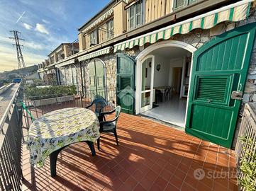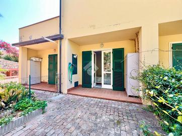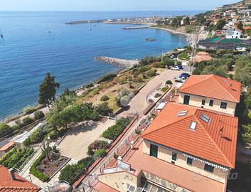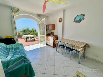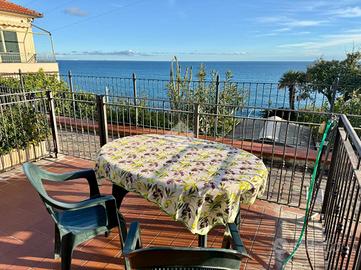L'attrattiva principale è il terrazzo spazioso, da cui si può ammirare una vista mare panoramica mozzafiato, ideale per rilassarsi o intrattenere gli ospiti in un ambiente sereno e pittoresco. L'immobile dispone anche di un giardino privato terrazzato che offre uno spazio esterno esclusivo per godersi le belle giornate all'aria aperta.