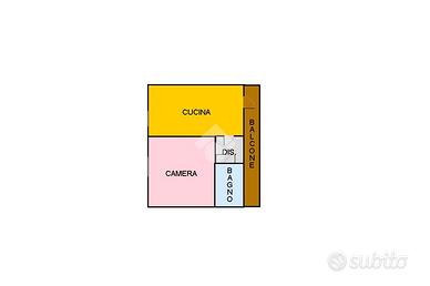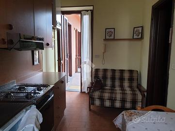 Attraverso il portoncino pedonale in legno, si accede all'androne condominiale. Giunti al piano il portoncino si apre sulla zona giorno, la quale si compone di una cucina abitabile.
