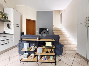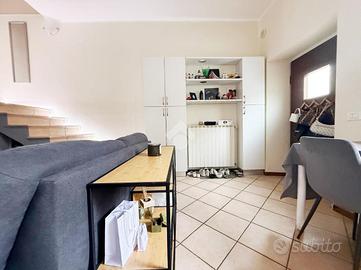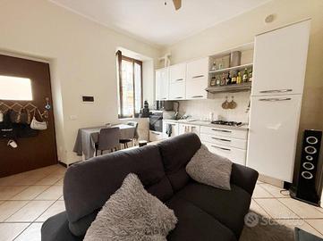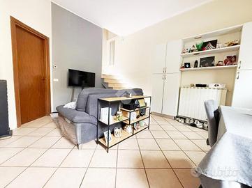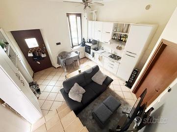 Bilocale ubicato in pieno centro paese, in prossimità di tutti i principali servizi. L'abitazione proposta sorge al piano basso di un ordinato contesto di corte del centro paese e presenta spese minime. Posta su due livelli abitativi presenta una luminosa zona giorno con cucina a vista; tramite comoda scala a giorno si accede al piano superiore che ospita la camera matrimoniale ed i servizi dotati di doccia. Il posto auto è di proprietà. Maggiori informazioni presso la nostra agenzia.