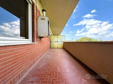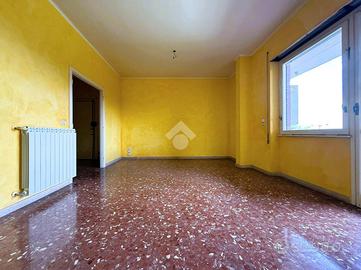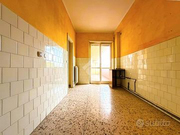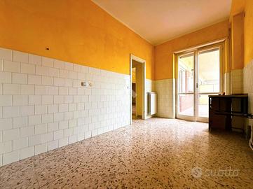 Con una superficie di 94 mq commerciali e 79 mq calpestabili, all'interno dell'appartamento troviamo l'ingresso con ripostiglio che, tipico del periodo di costruzione, può essere annesso al soggiorno abattendo un tramezzo. Il soggiorno è invece caratterizzato da una finestra e una porta finestra che consente l'uscita verso il balcone abitabile. La zona giorno viene completata dalla cucina separata anch'essa con porta finestra.