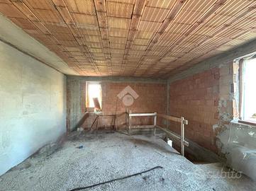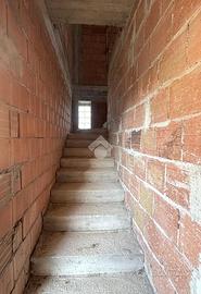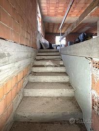 Varcato l'ingresso, ad accoglierci troviamo un disimpegno e delle scale che ci conducono al primo piano. Quest'ultimo attualmente non ha tramezzature che dividono i vari locali, ma presenta solo un'area di circa 61mq calpestabili.