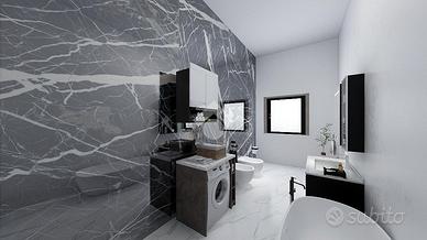 Successivamente troviamo la camera matrimoniale e il bagno finetsrato con vasca. La zona notte presenta un grande ripostiglio pratico per essere trasformato in una comoda cabina armadio.
