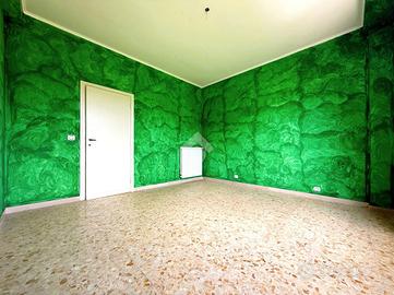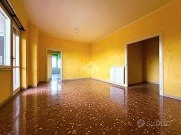 Con una superficie di 94 mq commerciali e 79 mq calpestabili, all'interno dell'appartamento troviamo l'ingresso con ripostiglio che, tipico del periodo di costruzione, può essere annesso al soggiorno abattendo un tramezzo. Il soggiorno è invece caratterizzato da una finestra e una porta finestra che consente l'uscita verso il balcone abitabile. La zona giorno viene completata dalla cucina separata anch'essa con porta finestra.