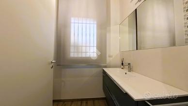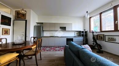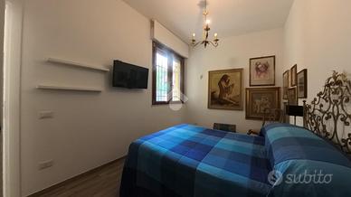 Da ingresso indipendente su piccolo portico con cancelletto, raggiungiamo la zona giorno, ampia con angolo cucina; seguono, una cabina armadio/studio e piccolo ripostiglio. La zona notte ha due bagni, uno finestrato e l'altro con box-doccia ed una camera matrimoniale.