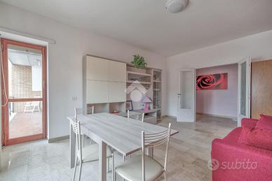 L'ingresso si apre su un primo disimpegno che conduce al soggiorno, ampio e ben proporzionato, luminoso e accogliente. Proseguendo nel corridoio, un secondo disimpegno separa in modo funzionale la zona giorno dalla zona notte, garantendo maggiore privacy. Sulla sinistra troviamo la cucina abitabile, funzionale e comoda; a seguire si sviluppa la camera matrimoniale, spaziosa e ben organizzata. Soggiorno, cucina e camera godono tutti dell'accesso a un balcone abitabile, elemento di grande valore che dona continuità tra interno ed esterno e garantisce ottima luminosità durante l'arco della giornata. In fondo al corridoio è presente il bagno finestrato con vasca.