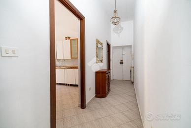 Proseguendo troviamo una camera matrimoniale molto ampia, valorizzata dalla presenza di un armadio a muro, e un soggiorno ben proporzionato, facilmente arredabile e adatto sia alla vita quotidiana sia ad accogliere ospiti. La doppia esposizione garantisce una buona luminosità e una naturale ventilazione degli ambienti.
