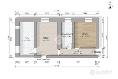 L' ingresso si apre su un disimpegno che conduce a tutte le stanze; per prima la camera da letto e a seguire il bagno finestrato dotato di doccia doppia.