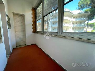 L'appartamento si compone di un ampio salotto dove la luce naturale ne fa da padrona con splendida vista sulla pineta e mare, perfetto per momenti di relax e convivialità, una spaziosa camera matrimoniale composta da letto matrimoniale e due letti singoli, con accesso diretto al balcone verandato affacciato sulla strada principale, bagno finestrato, e cucina funzionale e ben organizzata.