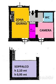 Ristrutturato e luminoso si compone di locali comodi e ben distribuiti sull'intera superfice di circa 75mq. L'ingresso si affaccia su un pratico disimpegno che suddivide egregiamente la zona notte dalla zona giorno. Quest'ultima è composta da un unico luminoso locale dove vi è predisposta una spaziosa cucina moderna ed una confortevole area relax. Una bella scala in legno, ci conduce al soppalco , un comodo locale accessorio openspace con travi a vista.