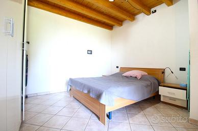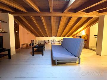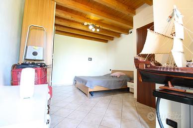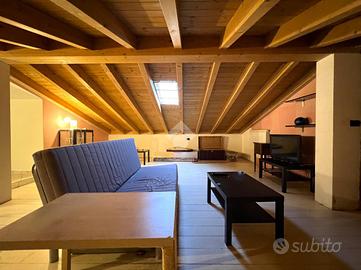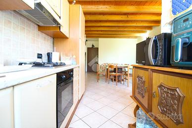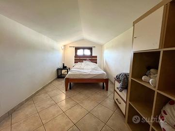 Salendo dalla scala a chiocciola posta di fianco all'ingresso, saliamo nel sottotetto composto da un ampio salotto con travi a vista, una lavanderia e una camera da letto.