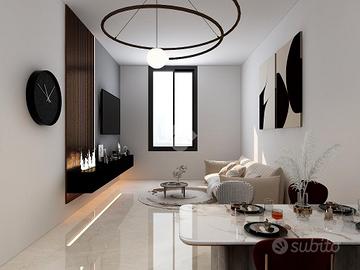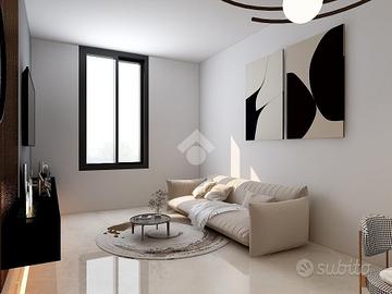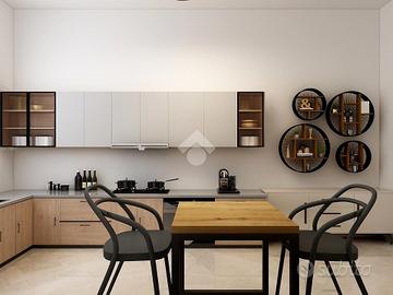 L'appartamento si apre direttamente su quello che è il soggiorno (che potrebbe essere anche usufruita come zona giorno open space), una cucina abitabile (usufruibile eventualmente come studio), una camera da letto e un bagno finestrato con doccia.