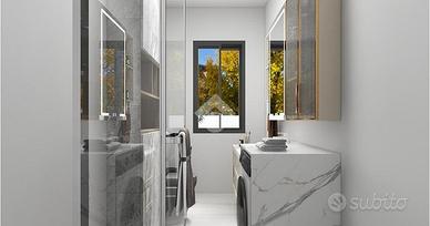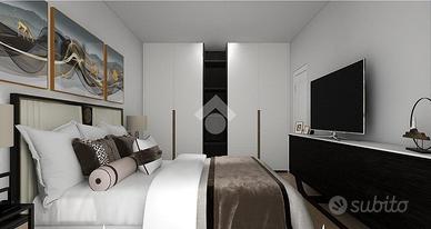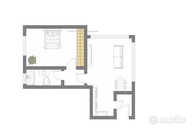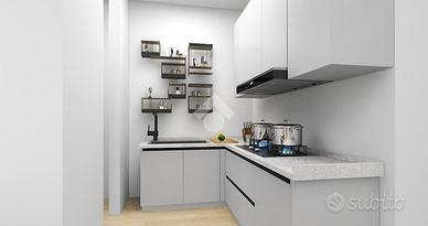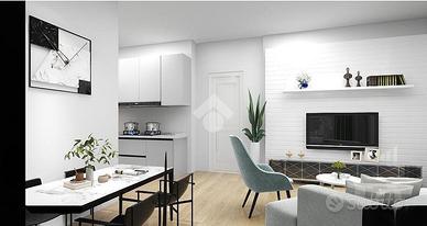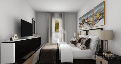 La proposta bilocale prevede una zona giorno che si apre su un ambiente open space accogliente e moderno, mentre la camera offre tranquillità e privacy.