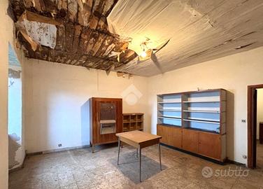 Attraversando il portone condominiale ad accoglierci troviamo una caratteristica scala che ci conduce alla porta d'ingresso. L'immobile si presenta da ristrutturare ed è così composto: un ampio spazio ideale per ricreare un soggiorno con angolo cottura, una camera da letto e un'altra stanza ad oggi usata come cameretta ma potrebbe diventerebbe un bagno finestrato.
