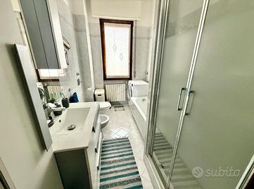 Il bagno finestrato, completo di tutti i servizi, dispone di vasca e doccia.
