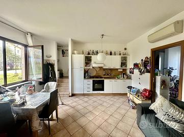 CORTE FRANCA: proponiamo in vendita, in zona residenziale nella frazione di Colombaro, ampio bilocale disposto su due piani con posto auto comune. L'immobile ha ingresso indipendente, entrando troviamo un ampio soggiorno con cucina a vista, camera al momento adibita ad area relax e bagno finestrato con doccia. Tramite una comoda scala interna si accede alla ampia mansarda, attualmente adibita a camera matrimoniale con zona armadio e bagno interno, finestrato, con doccia e lavanderia. La propietà è completa di posto auto esterno comune e giardino comune sul retro. Per maggiori informazioni contattare l'Agenzia!