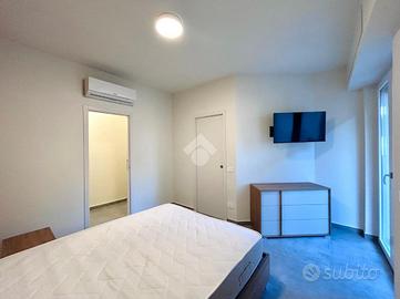 Composto da un comodo soggiorno cucina dotato di piano cottura ad induzione ed accesso sul balcone, bagno con box doccia ed una camera da letto matrimoniale, anch'essa con accesso sul balcone ed una comoda cabina armadio.
