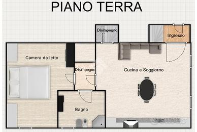 Proponiamo in vendita un appartamento situato al piano terra. L'ingresso conduce direttamente a una zona giorno accogliente, con soggiorno e angolo cottura integrato, ideale per una gestione funzionale degli spazi. L'ambiente risulta luminoso e confortevole.