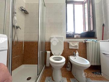 Proseguendo, si accede al bagno, dotato di una pratica doccia e rifinito in modo semplice ma ordinato.