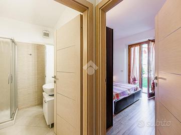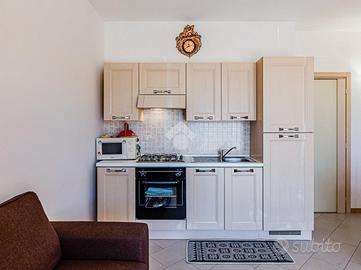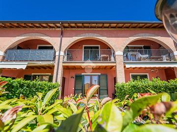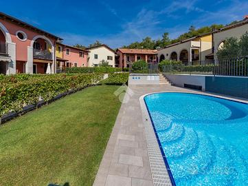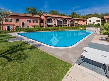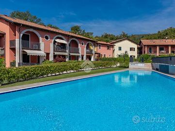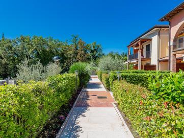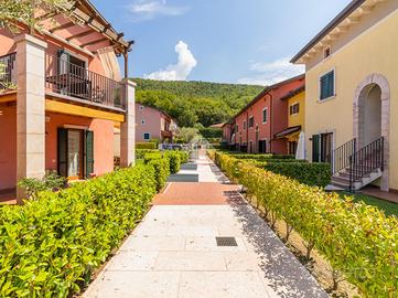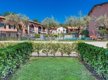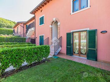 COSTERMANO SUL GARDA, Castion Veronese: Nel rinomato residence 'La Fiorita', alle porte di Castion, proponiamo in vendita un appartamento bilocale al piano terra con giardino privato ed un piacevole porticato ideale per mangiare all'aperto. Il residence si trova a soli 2 km dai campi da Golf Ca' degli Ulivi, gode di una grande piscina ben curata ed è stato costruito nel 2009 già con criteri attenti al risparmio energetico ed agli isolamenti termo-acustici. Il grande giardino di proprietà ed il porticato coperto ci introducono nell'appartamento composto da soggiorno con angolo cottura, un comodo disimpegno attrezzato con lavatrice ed asciugatrice, la camera matrimoniale che affaccia su un ulteriore porzione di giardino privato ed un bagno con box doccia. A completare la soluzione troviamo un garage singolo ed una cantina entrambi di ottima metratura. L'immobile è molto recente ed elegantemente rifinito, è stato usato pochissimo e si presenta pari al nuovo. Il mobilio è ben studiato e completo; tutti gli arredi, i corredi e gli accessori vengono lasciati nell'appartamento così da renderlo immediatamente utilizzabile. Il riscaldamento comandato da remoto, le due grandi TV a schermo piatto con collegamento satellitare, il pergolato da installare e gli elettrodomestici recenti sono solo alcuni dei vantaggi di chi ha curato questo immobile nei minimi particolari. La posizione strategica del contesto consente di raggiungere in pochi minuti il lago di Garda e il casello autostradale di Affi; la zona immersa nella natura è ideale per lunghe passeggiate, per piacevoli giri in bici o a cavallo.