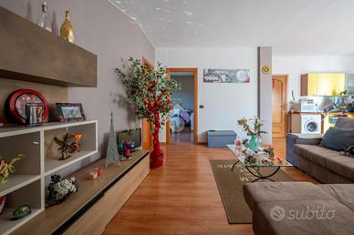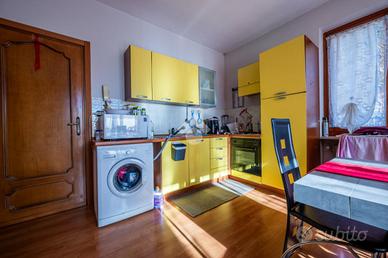 L'ingresso si apre direttamente sulla zona giorno, luminosa e accogliente, composta da soggiorno con angolo cottura a vista.