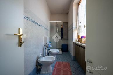 Il bagno finestrato è completo di box doccia.