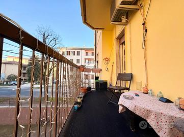 Da qui si raggiunge il soggiorno, spazioso e particolarmente luminoso, grazie alla presenza dell'uscita diretta sul balcone, che dona luce naturale e ariosità all'ambiente, rendendolo ideale per momenti di relax e convivialità.