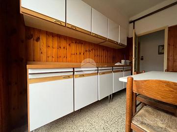 L'ingresso accoglie e conduce direttamente alla cucina abitabile, di generose dimensioni, dotata di accesso al balcone, ideale per momenti di relax o per creare un pratico spazio esterno di servizio.