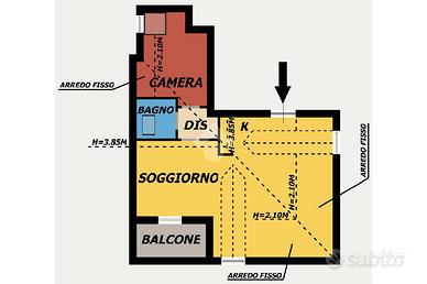 L'appartamento è composto come segue: Ingresso nella Zona Giorno composta da un Ampio e Luminoso Soggiorno con Cucina a Vista e Balcone. Il Disimpegno ci conduce nella Zona Notte dove vi si trova la Camera Matrimoniale ed un Bagno Finestrato con Doccia.