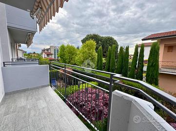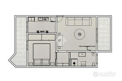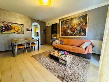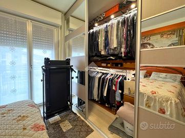 Un disimpegno con comodo mobile su misura conduce alla zona notte, composta da un bagno finestrato con moderno box doccia e da una spaziosa camera matrimoniale. Quest'ultima è dotata di cabina armadio e porta finestra con affaccio sul balcone, garantendo luce naturale durante tutto il giorno. A completare la soluzione una comoda cantina.
